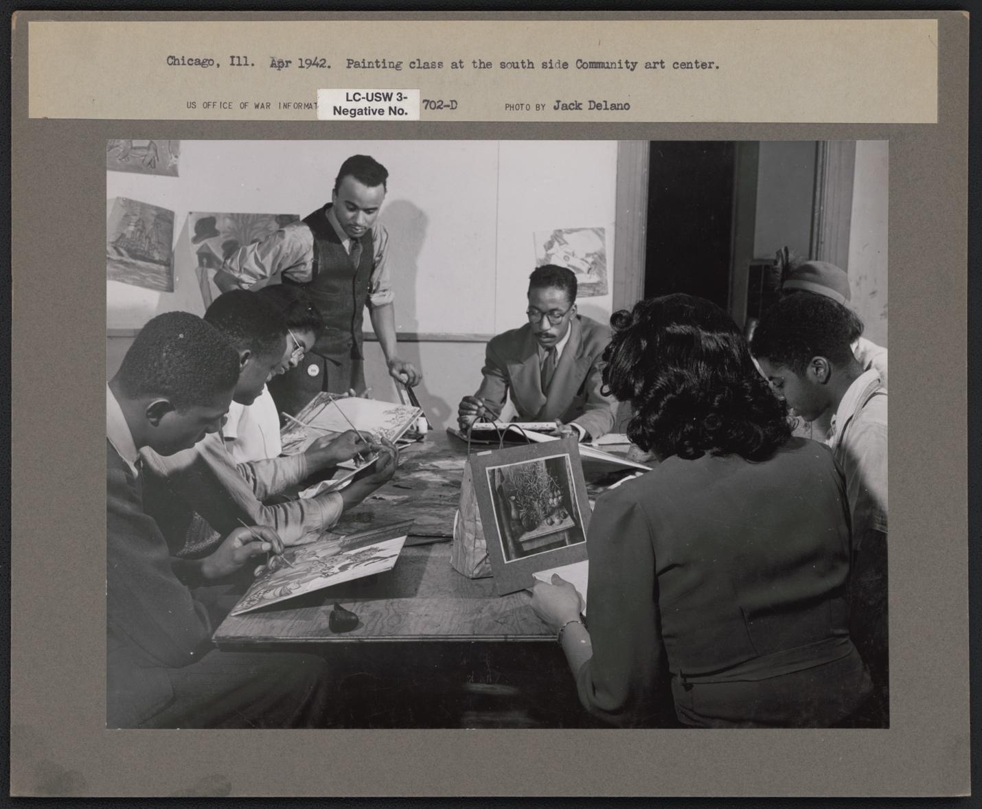 Eldzier Cortor, Margaret Burroughs, and Charles White each received foundational artistic training in Chicago, where the cityтАЩs dynamic cultural scene left a lasting imprint on their work. All three graduated from Englewood High School and studied at the School of the Art Institute of Chicago (SAIC), where they were exposed to both classical European techniques and the powerful aesthetics of African artтАФelements that would become central to their visual languages. Burroughs also studied at Chicago Teachers College, where she developed a strong commitment to education, history, and community engagement. Together, they used their art to affirm Black life with dignity, historical depth, and creative prowess.